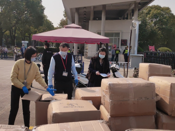 校園安保人員嚴(yán)把校門防線,堅守崗位,守護(hù)平安校園;部門之間通力協(xié)作,對接每一批進(jìn)校物資,清點數(shù)量,搬運整理,高質(zhì)量完成學(xué)校防疫物資保障工作;在校師生的三餐和物資補(bǔ)給,在特殊時期依然有序供應(yīng),后勤部門及時保障,師生校園生活不受影響。