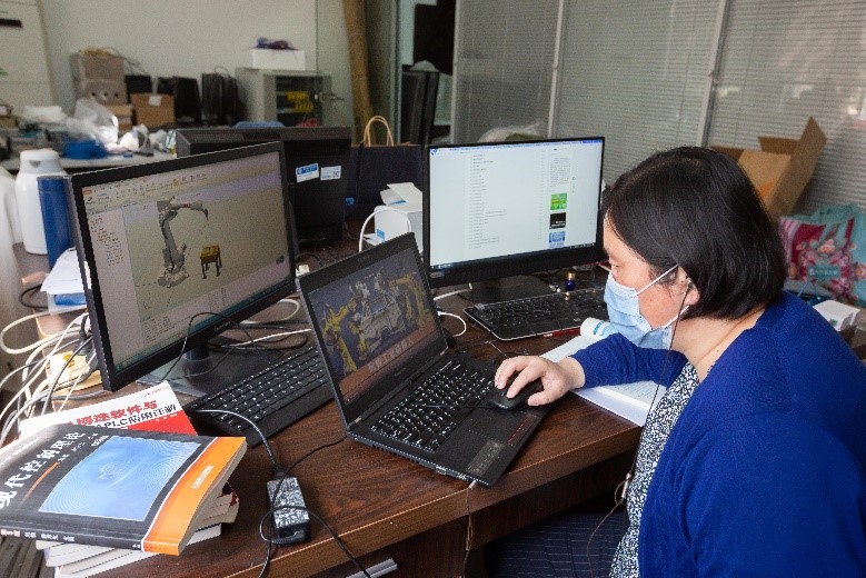 智能制造與控制工程學(xué)院測控與自動化系黨支部書記胡志華老師,為了進一步提升線上課堂教學(xué)效果,在給本科生上《工業(yè)機器人技術(shù)》這門課時,充分利用虛擬仿真技術(shù),讓學(xué)生身臨其境,課堂更加生動有趣,受到同學(xué)們的歡迎。同時,胡志華老師還利用堅守在學(xué)校的機會,線上線下指導(dǎo)學(xué)生參加一系列競賽,每天安排得滿滿當(dāng)當(dāng)。