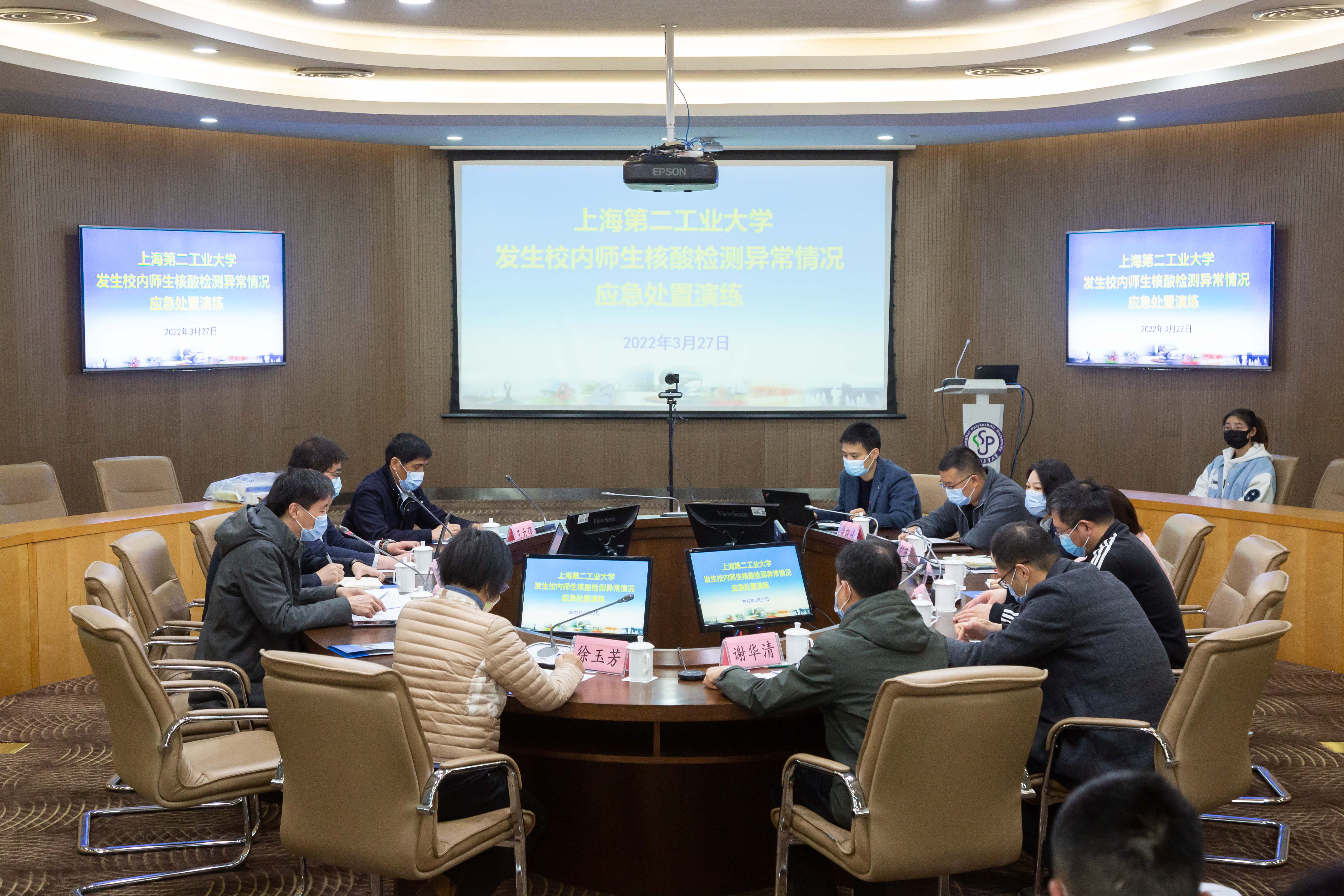 演練分兩階段進行。第一階段在19號樓301室舉行,為突發疫情的應急響應檢查和應急處置工作流程再培訓。校長謝華清通過線上方式進行了不通知點名,檢查應急情況下10分鐘內各單位各部門疫情防控第一責任人響應到位的情況,隨機抽查各二級學院在校師生底數情況,隨機測試教職工應急處置工作能力。謝華清強調指出,各職能部門及學部學院負責人要始終繃緊疫情防控這根弦不放松,進一步強化危機意識,尤其對自己本部門教職工和學生的底數要做到心中有數,應急響應要快速;要進一步熟悉應急處置工作預案和應急處置工作流程,不斷提高實戰應急處置工作能力。