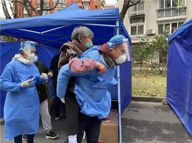 劉強從第一時間報名參加社區(qū)戰(zhàn)“疫”志愿者并擔(dān)任社區(qū)志愿者10隊隊長后,他挨家挨戶敲門,幫助很多獨居老人成功申請核酸檢測二維碼,當(dāng)遇到行走不便的老人時,劉強老師二話不說直接背起老人直接去做核酸檢測。3月18日下午小區(qū)第二次全員核酸時這溫暖的一幕,被社區(qū)居民用手機記錄了下來,這份“背起的愛”感染了很多人。