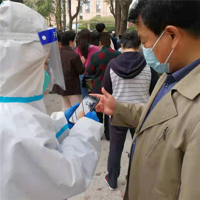 “那天我去敲門,發(fā)現(xiàn)這位年屆九旬的老人出門后走得有點顫顫巍巍,我想還是背她去檢測點更方便吧。由于檢測碼已經(jīng)提前生成,到了檢測點,大家都很禮讓,讓老人家先行完成采樣。”作為一名體育老師,劉強表示,“2個100米,還是可以有的!”