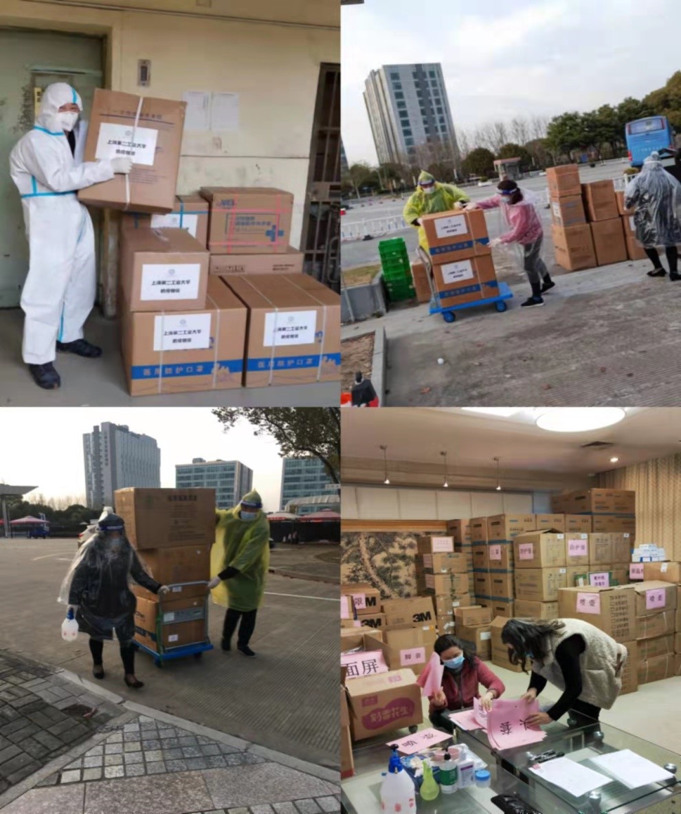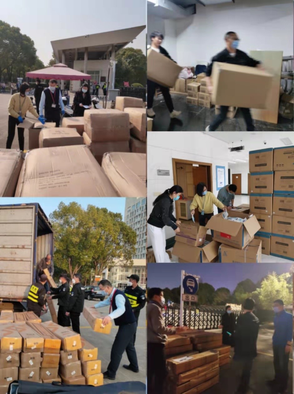 為了在短時(shí)間內(nèi)籌措應(yīng)急物資,部門成立了由六名在校黨員組成的應(yīng)急防疫物資籌備小組,線上線下聯(lián)系供應(yīng)商,此起彼伏的手機(jī)電話從未停歇,深夜里工作群中的信息還在閃爍。從白天到黑夜,部門對接每一批進(jìn)校物資,清點(diǎn)數(shù)量,消毒搬運(yùn),整理入庫,在深夜12點(diǎn)前將行軍床、睡袋、防護(hù)服、口罩等防疫物資及時(shí)發(fā)放給在校師生,保障了師生在校園封閉管理期間的防疫與生活需要。期間,校領(lǐng)導(dǎo)和組織部、基建處、保衛(wèi)處等部門負(fù)責(zé)人與老師也一同參與搬運(yùn)接力工作,人人有責(zé),齊心協(xié)力,共同抗“疫”的場景在校內(nèi)再次出現(xiàn)。