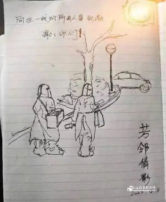 保衛(wèi)處張寧老師創(chuàng)作宣傳畫,表現(xiàn)一線抗疫人員的從容與堅(jiān)定