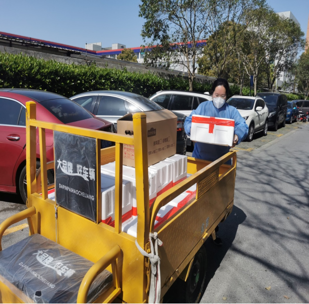 文理學(xué)部科技翻譯教研室主任黑黟在搬運(yùn)生活物資