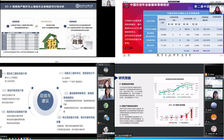 在“三創(chuàng)”比賽的備賽過程中,由于國(guó)際站、EBay、速賣通和獨(dú)立站四個(gè)新賽道對(duì)專業(yè)能力要求較高,吳翠紅、董雁、尹詩、許肇然老師一邊學(xué)習(xí)專業(yè)知識(shí),一邊在線指導(dǎo)學(xué)生。目前已有15個(gè)小組通過實(shí)踐賽初賽,正在積極準(zhǔn)備第二階段的復(fù)賽。在傳統(tǒng)的理論賽道上,16余支隊(duì)伍設(shè)計(jì)的創(chuàng)業(yè)策劃方案經(jīng)過5個(gè)多月的磨練,即將迎來理論賽校級(jí)比賽,與全校其他專業(yè)的團(tuán)隊(duì)共同競(jìng)爭(zhēng)入圍上海賽資格。
