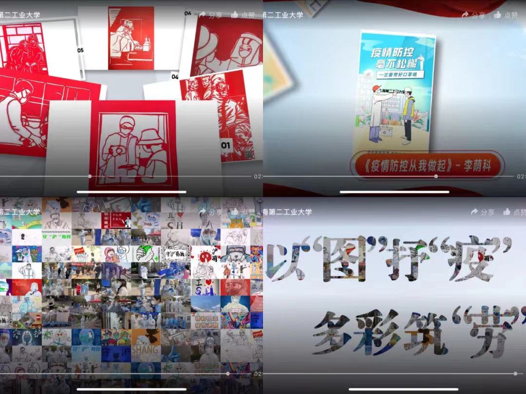 許多同學用不同的方式來支持防疫工作,文理學部余王若嬋同學分享了她和小伙伴們的《繪青春,剪真情,致敬“抗疫天使”》系列剪紙作品;應用藝術設計學院沈璐暢同學帶領大家欣賞了一幅幅繪畫圖片,每一個瞬間,都讓線上師生感同深受。他們用手中的玲瓏剪、畫筆記錄疫情防控中的勞動畫卷,用自己的方式,表達對一線抗“疫”人員的致敬和感謝。
