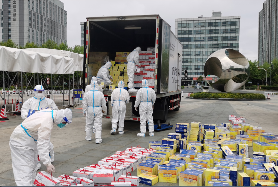 3月中旬,在學校剛轉入準封閉管理時,中國銀行上海市中銀大廈支行、奉賢區南橋鎮政府就為學校送來了一批N95口罩、醫用檢查手套和餅干、飲料等生活物資。