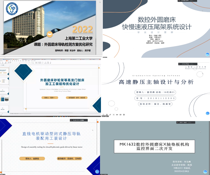 機械工程專業與上海機床廠已合作進行三屆聯合指導畢設工作,目前已有多名參與該項目的學生與上海機床廠簽訂就業協議。2021年11月起,18級機械工程專業選派10名學生到上海機床廠開展畢業設計并定期到崗參與企業具體研發項目,由企業工程師和學校老師聯合指導,畢業設計課題全部來自企業實際需求。此次校企聯合指導畢業設計答辯活動為畢業設計最終環節,由上海機床廠企業導師和校內指導老師組成答辯組,線上答辯環節嚴格按流程進行,保證答辯質量。學生結合圖紙模型,仿真分析等內容介紹畢設主要完成工作,企業導師進行點評、審閱論文、圖紙和現場提問等完成畢設評分,同學們記錄各自論文中存在的問題,并根據答辯意見完善修改。