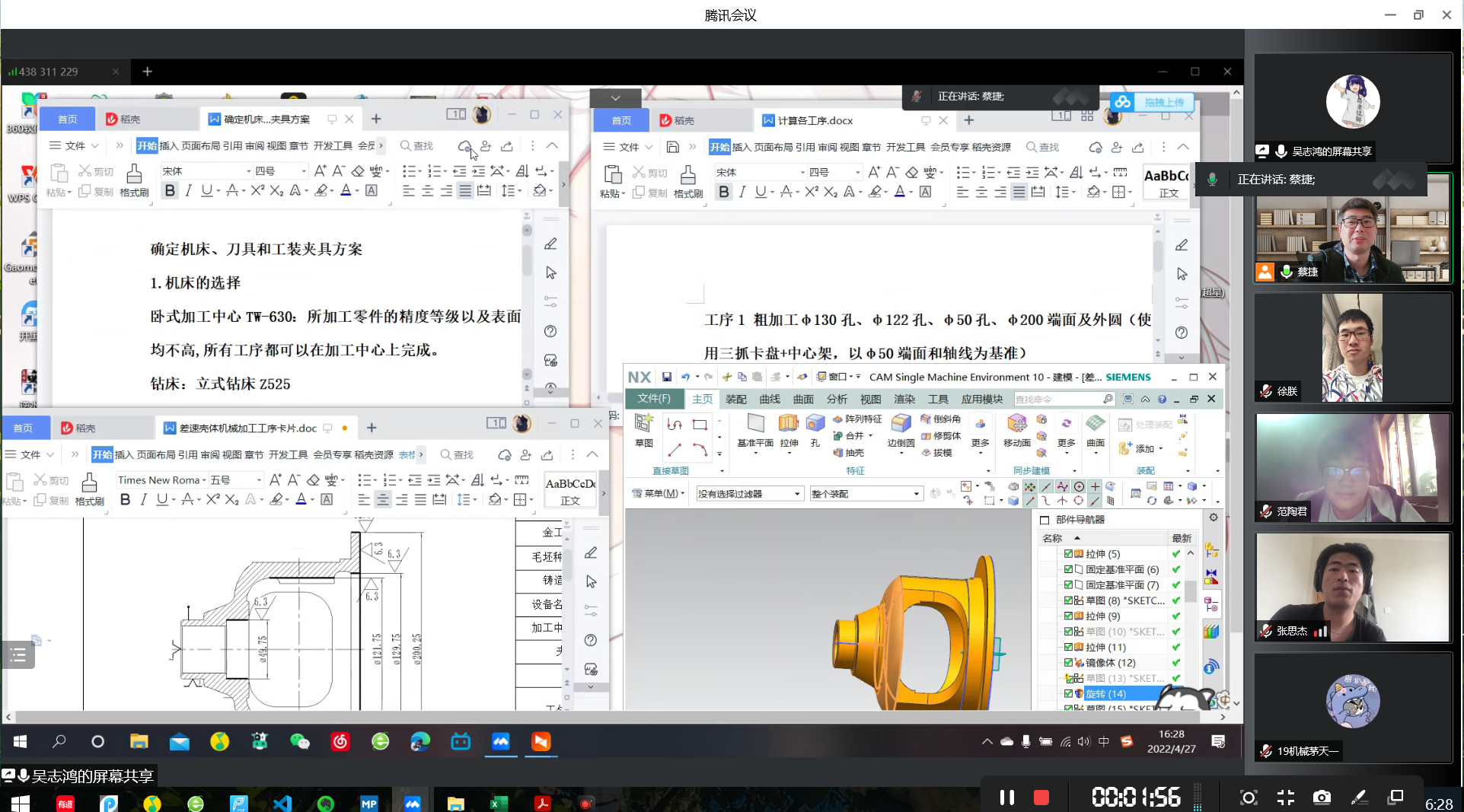 材料成型及控制工程教研室秉持學生中心的理念,通過每周一次的教研活動,不斷優化課堂互動的方式方法,將課堂還給學生。針對理論性較強的課程《塑性成形原理》,苑文婧老師將新老知識點融會貫通,講解新知識點時讓學生打開騰訊會議互動批注書寫已學過的相關知識點,既讓學生深刻理解新舊知識點之間的邏輯關系,又能活躍課堂增加趣味性。對實踐類課程《計算機輔助設計》,秦明英老師每次講解完UG軟件的一個功能,就會要求學生共享屏幕演示,以此保證學生獲得線上線下同質等效的教學效果。