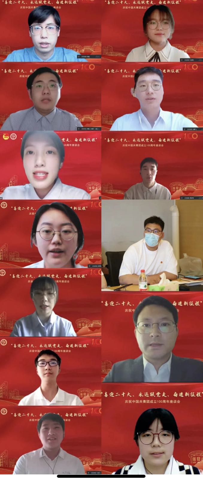 表彰大會后,校領(lǐng)導(dǎo)及優(yōu)秀師生代表共同參加“喜迎二十大、永遠(yuǎn)跟黨走、奮進(jìn)新征程”慶祝中國共青團(tuán)成立100周年座談會,座談會由校團(tuán)委書記董凌莉主持。