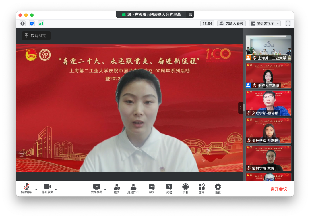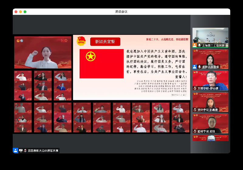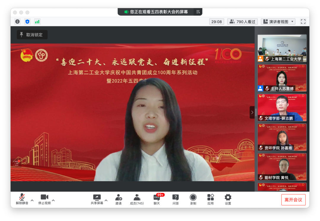 5月4日下午,學(xué)校舉行以“喜迎二十大、永遠(yuǎn)跟黨走、奮進(jìn)新征程”為主題的慶祝中國共青團(tuán)成立100周年系列活動。活動現(xiàn)場對2021-2022學(xué)年共青團(tuán)系統(tǒng)獲得國家級、市級獎項的集體和個人進(jìn)行表彰,慶祝中國共青團(tuán)成立100周年座談會同時舉行。活動以線上線下相結(jié)合的方式進(jìn)行,校黨委書記吳松、校長謝華清、副校長丁力,組織部、宣傳部、學(xué)(研)工部、教務(wù)處、馬克思主義學(xué)院、校團(tuán)委等相關(guān)部門負(fù)責(zé)人,各學(xué)部(院)領(lǐng)導(dǎo)、團(tuán)學(xué)組織負(fù)責(zé)人以及600余名優(yōu)秀學(xué)生代表出席。