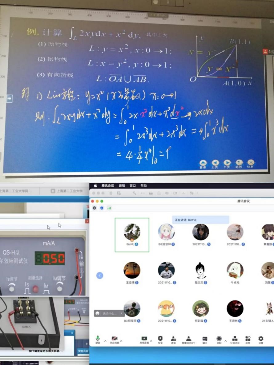 大學(xué)物理教研室的老師們本學(xué)期主要承擔(dān)《大學(xué)物理》課程的教學(xué)。物理學(xué)科邏輯性強(qiáng)、難度較大,在教學(xué)過程中需要實(shí)時關(guān)注學(xué)生,確保同學(xué)們對知識點(diǎn)的理解和掌握。教師們采取“一個在線平臺+一個即時課堂+一個QQ群(微信群)”的方式開展線上教學(xué),充分發(fā)掘和利用多種軟件的功能,增加課堂問答和互動環(huán)節(jié),活躍課堂氣氛。