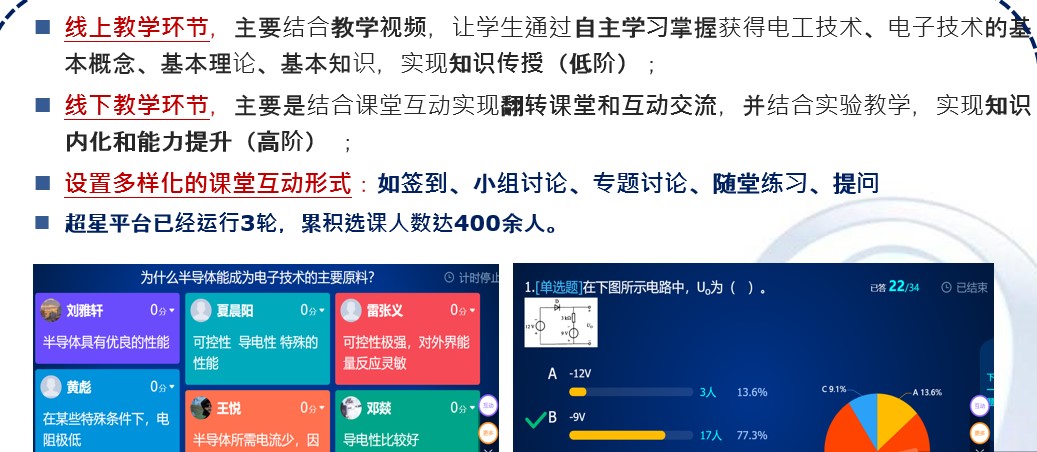 作為中心的新進教師,尹麗華老師為了更好地保障線上教學效果,梳理出教學疑惑,虛心向老教師請教。她提前了解學生對《電工與電子學》課程的專業知識基礎,再根據學生的反饋構建課程內容體系,調整課程內容的深度和廣度,激發學生興趣,幫助學生掌握知識。