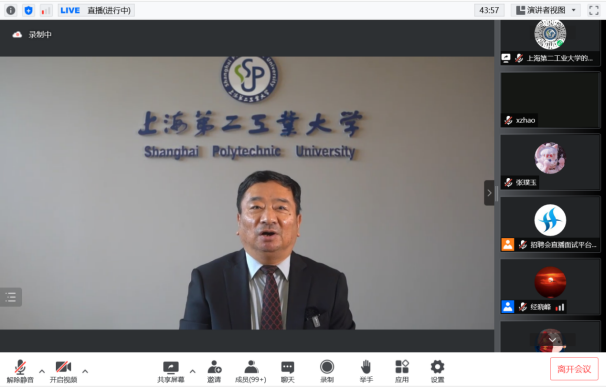 謝華清校長向參會企業介紹了學校近年來取得的成績及人才培養特色,并熱情向企業推介各專業的畢業生。他講到,面對今年的就業形勢,學校全方位全員發力為2022屆畢業生求職就業保駕護航。依托“云招聘”、“云求職”、“云課堂”、“云簽約”、“云服務”,做到“心貼心”、“點對點”、“肩并肩”、“實打實”做好就業指導服務,讓就業目標不松懈、工作不斷線、效果不打折。學校畢業生一直深受用人單位青睞,在商飛、上飛、上海電氣、上海華力、上海建工、外高橋造船、江南造船、上海地鐵、迪士尼等知名企業,都能看到二工大畢業生的身影。希望借助這次機會,進一步加強與各用人單位的溝通與交流,共同助推二工大畢業生更加充分、高質量就業。