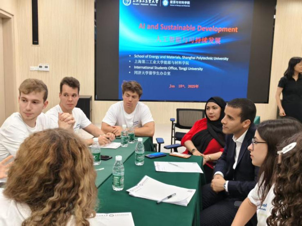 6月18日下午,在上海第二工業大學能源與材料學院210報告廳,一場以“人工智能與可持續發展”為主題的研討會舉行,5名來自同濟大學聯合國環境與可持續發展學院的國際學生,與來自上海新時代國際暑期學校“綠色發展:熱功能材料設計及開發”項目的22名上海第二工業大學國際項目學員共同探討了人工智能與可持續發展的前沿議題。