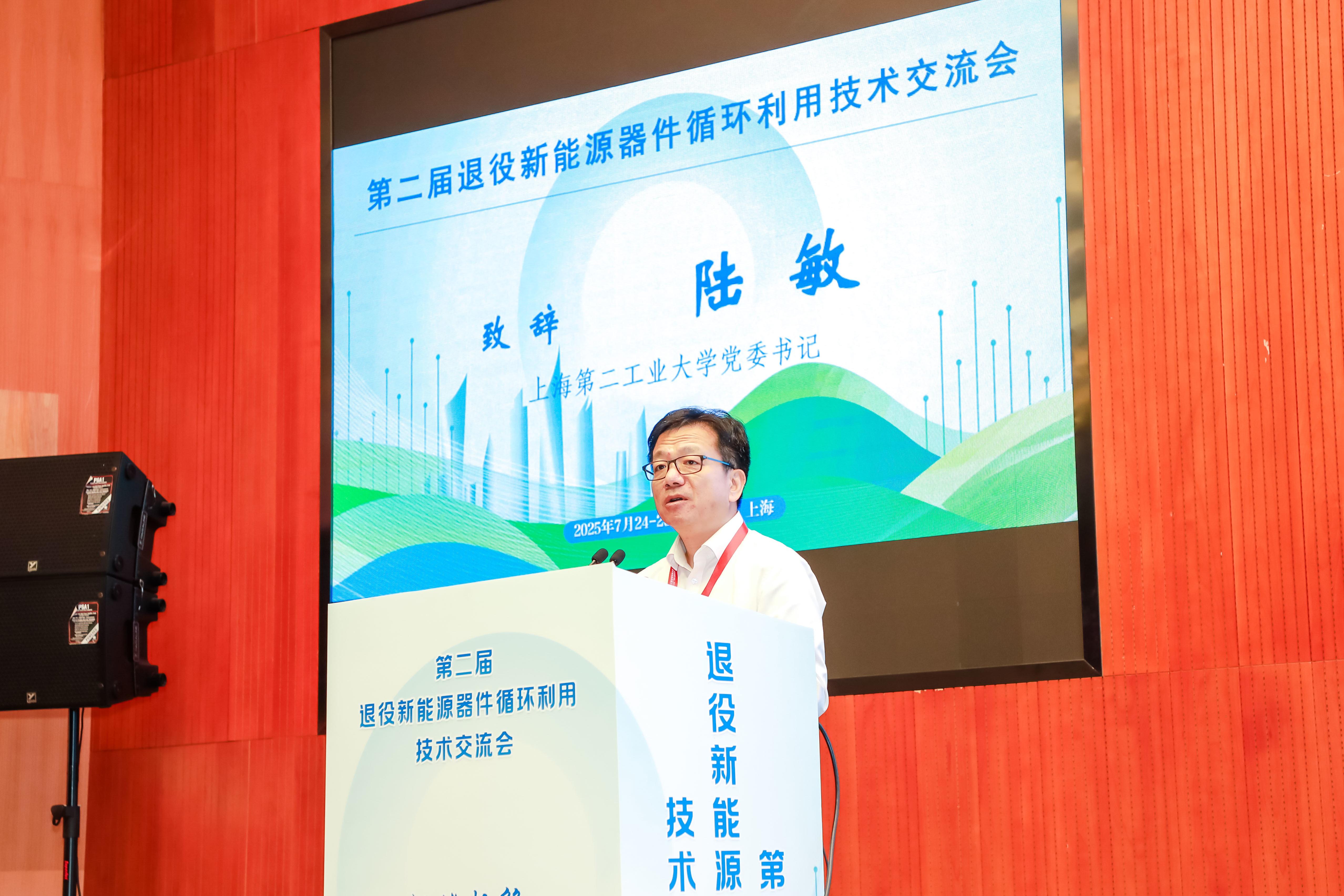 開(kāi)幕式上,校黨委書(shū)記陸敏發(fā)表致辭,對(duì)遠(yuǎn)道而來(lái)的嘉賓表示熱烈歡迎,并強(qiáng)調(diào)了本次會(huì)議以“退役新能源器件循環(huán)利用” 為核心,聚焦標(biāo)準(zhǔn)建設(shè)、政策法規(guī)、技術(shù)突破與工程實(shí)踐的重要意義。陸敏指出,新能源產(chǎn)業(yè)作為國(guó)家戰(zhàn)略性新興產(chǎn)業(yè),其退役環(huán)節(jié)的循環(huán)利用是落實(shí)“雙碳” 目標(biāo)的關(guān)鍵,上海第二工業(yè)大學(xué)作為主辦方,將全力搭建政產(chǎn)學(xué)研用深度融合的平臺(tái),為行業(yè)發(fā)展貢獻(xiàn)智慧。
