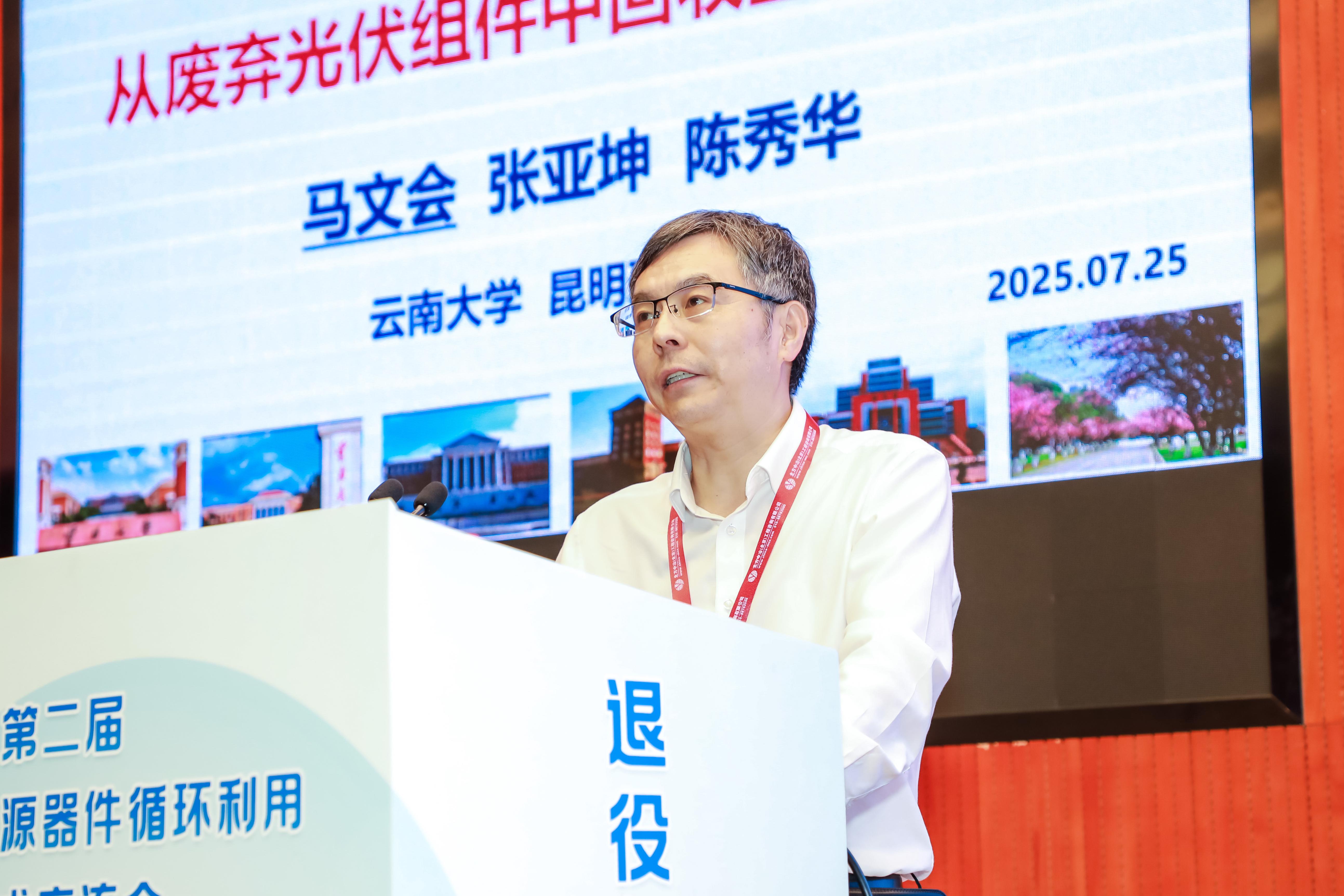 我校周全法教授帶來(lái)“光伏銀回收技術(shù)進(jìn)展” 的報(bào)告,介紹了在光伏銀回收領(lǐng)域的最新研究成果;云南大學(xué)校長(zhǎng)馬文會(huì)教授聚焦“從廢棄硅光伏組件中回收金屬的研究”,為廢棄組件的金屬回收提供了新思路;井岡山大學(xué)校長(zhǎng)羅旭彪教授分享了“退役鋰電池循環(huán)增值再生技術(shù)與產(chǎn)業(yè)化” 的實(shí)踐經(jīng)驗(yàn);上海電力大學(xué)時(shí)鵬輝教授圍繞 “退役動(dòng)力電池綠色短流程資源循環(huán)利用技術(shù)及產(chǎn)業(yè)化”,展示了相關(guān)技術(shù)的突破與應(yīng)用。常州瑞賽環(huán)保科技有限公司總經(jīng)理莊虎梁、中國(guó)科學(xué)院過(guò)程工程研究所李會(huì)泉研究員等業(yè)界專(zhuān)家分別發(fā)言,就退役光伏組件回收案例、退役鋰電全量化熱解等內(nèi)容進(jìn)行了精彩分享,引發(fā)了現(xiàn)場(chǎng)的熱烈討論。