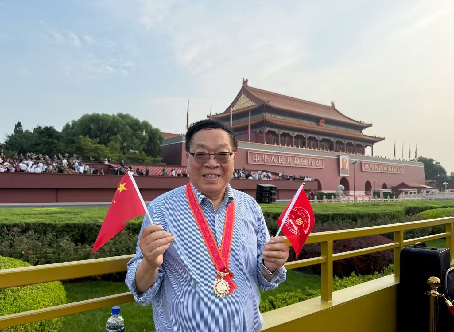 全國著名勞模、改革先鋒、最美奮斗者、上海勞模學院院長包起帆校友受邀在紀念大會現場觀禮。當氣勢磅礴的人民解放軍和最尖端的國防裝備從面前威武行進時,包起帆心潮澎湃,他說:“當我站在天安門廣場,看著五星紅旗在千人合唱團的激昂歌聲中冉冉升起,心中的自豪感油然而生。那整齊劃一的方陣、先進精良的裝備、鏗鏘有力的步伐,不僅展現了我們國家強大的國防實力,更讓我深刻感受到了中華民族在黨的領導下,從苦難走向輝煌的磅礴力量。我要把今天的震撼與自豪帶回校園,帶進課堂,告訴每一位學生:勞動最光榮,創造最幸福。我們要把閱兵式上看到的‘中國力量’,轉化為崗位上攻堅克難的‘中國創造’,用勞模精神、勞動精神、工匠精神為下一個輝煌的八十年添磚加瓦、貢獻力量!”