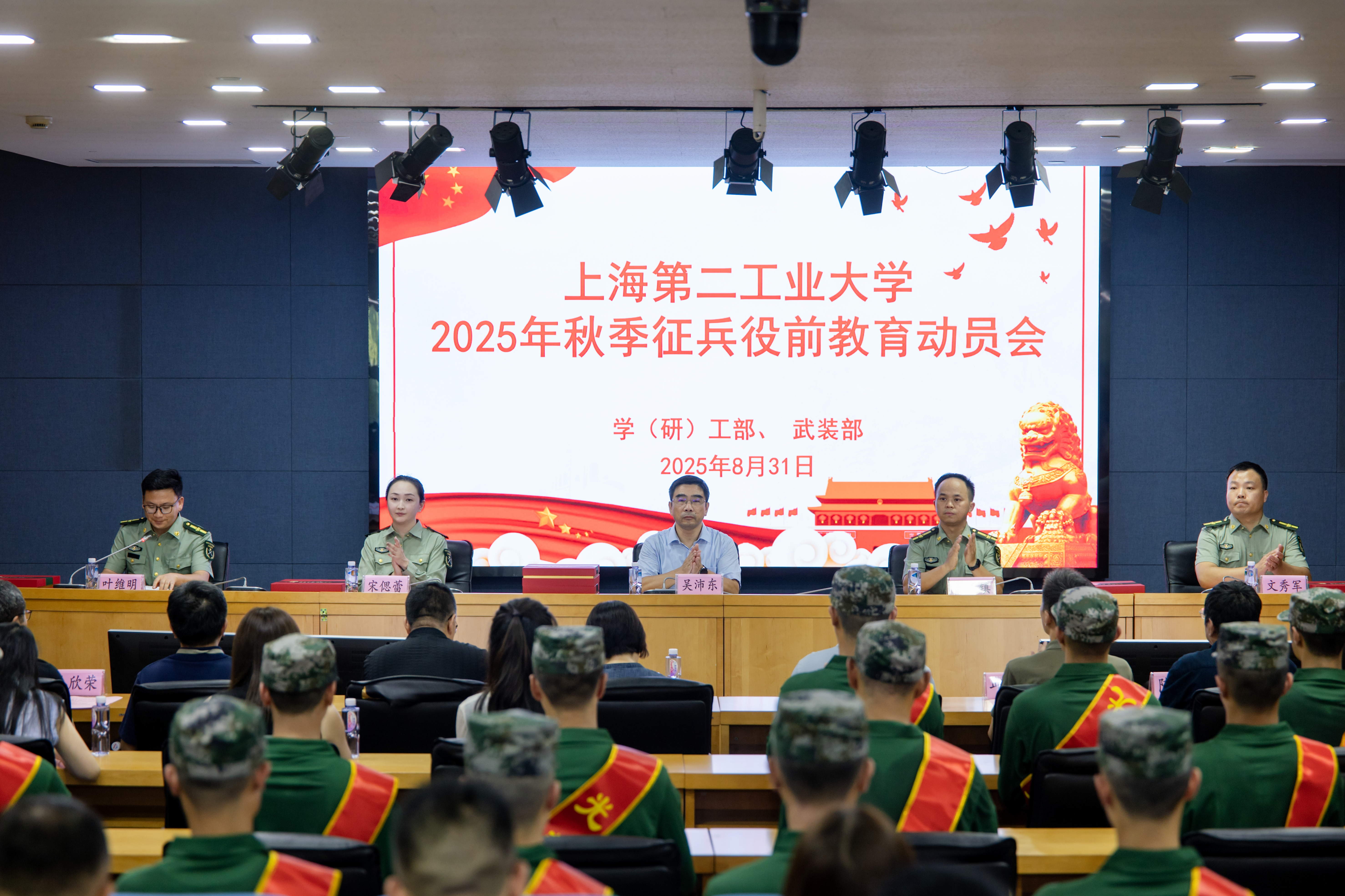 學(研)工部部長、武裝部部長許德鎮宣讀了《上海第二工業大學2025年秋季“雙合格”預征學生名單》。能源與材料學院2025屆畢業生、學生黨員潘秉通代表預征學生發言,他表示將拿出最好的狀態,嚴格遵守紀律,聽從指揮,努力提升身體素質和軍事技能,為進入軍營打下堅實基礎;智能制造與控制工程學院朱雋瑋同學代表退役大學生發言,他結合自身服役期間的成長與收獲,鼓勵預征對象勇于直面困難,敢于戰勝困難,早日成為合格軍人。教師代表、語言與文化傳播學院輔導員胡啟蕓老師寄語同學們要始終堅定對祖國山河的赤誠眷戀和對軍人使命的認同熱愛,盡快完成從“握筆” 到“握槍”的身份轉變,練出過硬本領,成長為讓自己驕傲的模樣。
