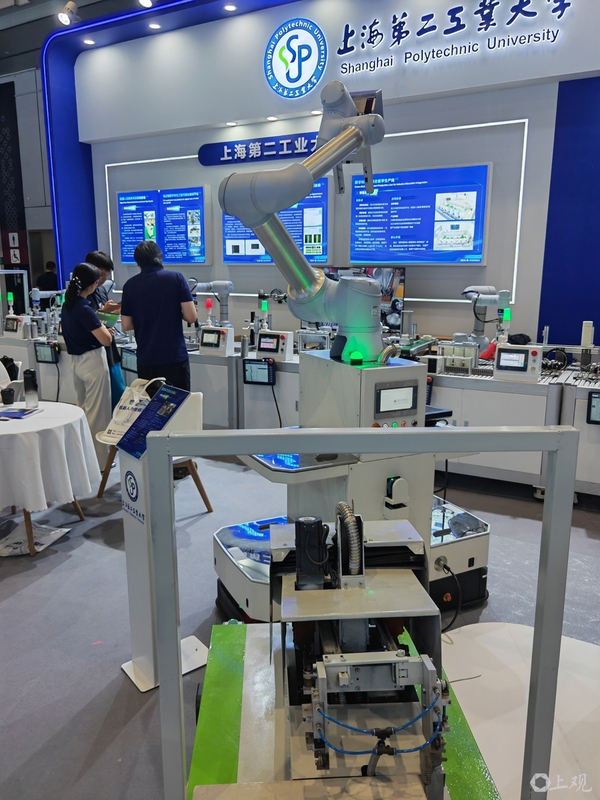 機器人加持下,人機存在競合關系,許多傳統工作確實可被完全替代,比如“扎掃把”。在上海第二工業大學展臺,智能柔性捆扎機器人“方頭方腦”并不起眼,它的機械臂搭載高精度壓力傳感器,能實時感知棒材的硬度與韌性,自動調節和適應力度。以往,有經驗的人工捆扎一把掃帚平均需時3分鐘,而機器人僅需20秒,效率提升近8倍,一年省下6到8人工資。