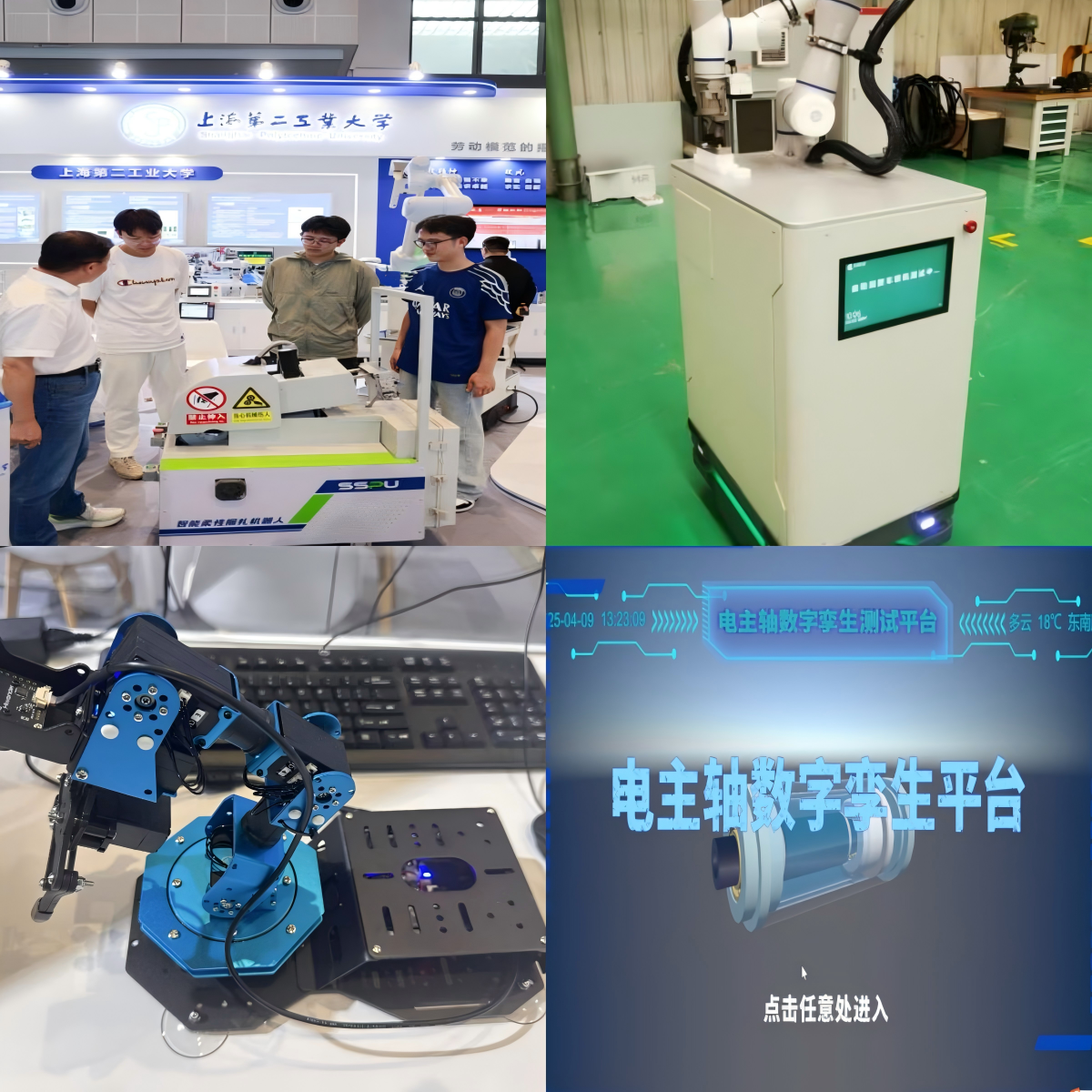 在未來智能領域,何成教授團隊自主攻關AI智能柔性捆扎機器人,效率提升近8倍,開啟高效標準化捆扎新時代,獲高校展區創新獎。王馨教授團隊自主研發的機器人加膠系統及智能膠桶來料識別準確率100%,單臺機器人可匹配12-18臺中高速機組,助力卷煙企業數字化升級。其研發的電主軸數字孿生三維可視化測試平臺,確保物理狀態與虛擬模型位姿偏差<0.5%,為遠程監控和智能診斷提供支撐。蔡寶工程師團隊自主開發機械臂數字孿生系統,實現高精度建模、智能仿真與低代碼開發三大核心技術突破。