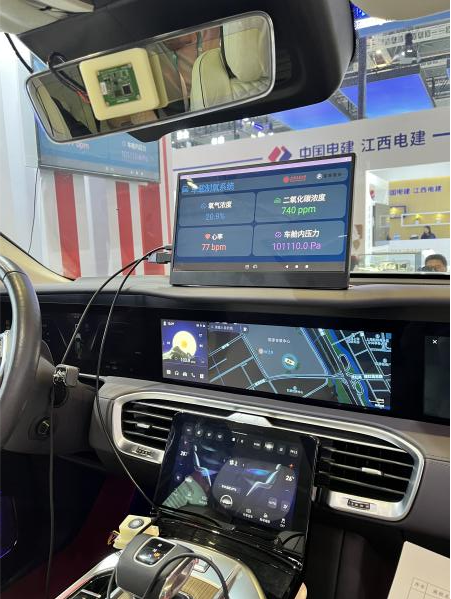上海交通大學陳江平教授團隊則帶來了全時智能健康座艙系統。在工博會現場,該系統被裝配在一輛紅旗轎車中,觀展者進入車廂后,其心率情況以及車廂內的氧氣濃度、二氧化碳濃度、車艙內壓力等數據,都會顯示在屏幕上。據研發工程師、上海交大研三學生趙千祥介紹,團隊創新研發“監測-調控”一體化系統,突破傳統技術分散性局限。通過毫米波雷達與生物電傳感器融合技術,實現心率等核心生理參數的無感化精準采集,誤差率低于3%,達到醫療監測級標準;同步集成微型富氧系統,打破單一供氧設備的功能局限,可在30分鐘內將車內氧濃度提升至23%以上,實現從“生理感知”到“健康干預”的無縫銜接,顯著緩解高原反應與駕駛疲勞,為駕乘者構建全時健康保障網。