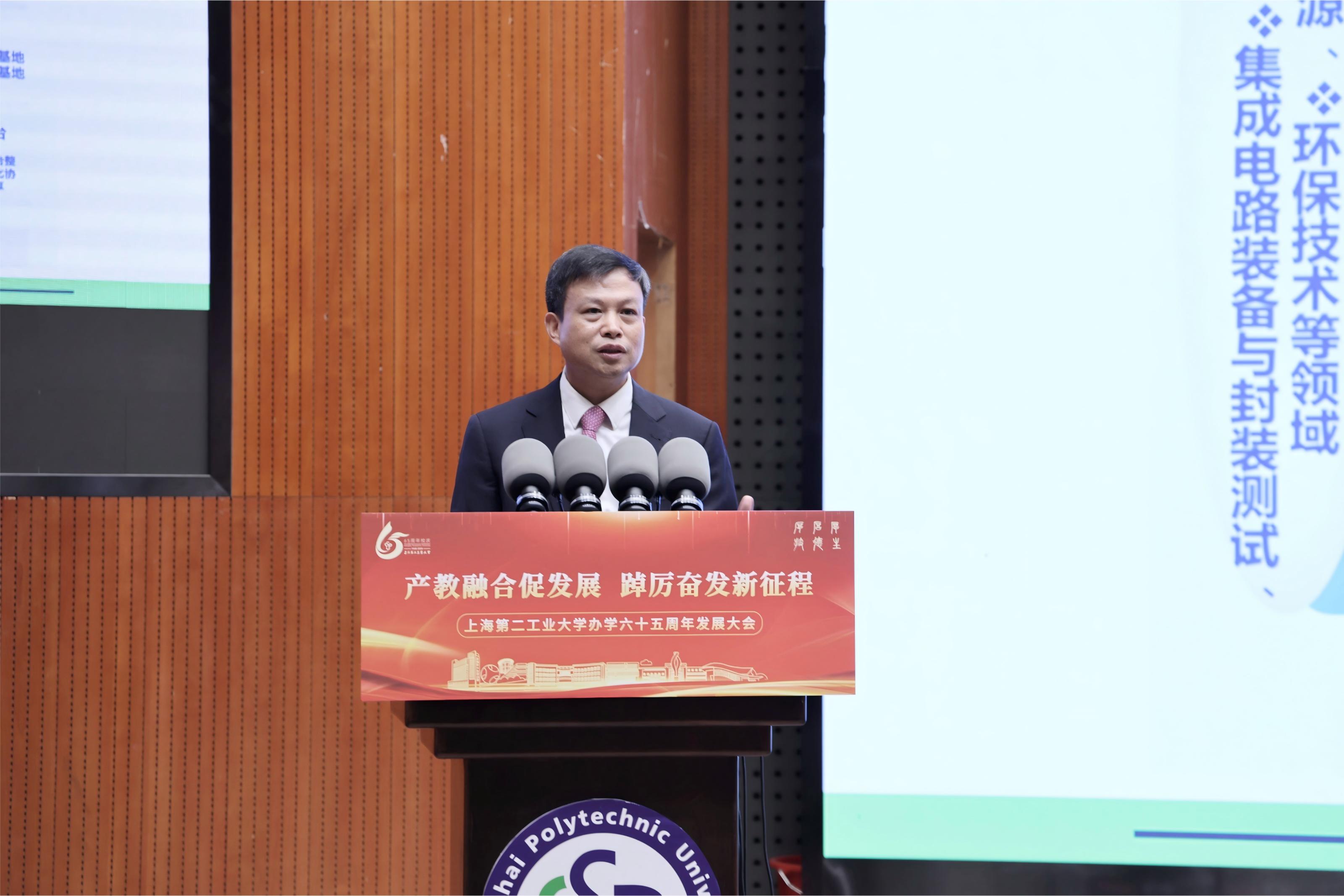 浦東新區副區長張娣芳在致辭中表示,二工大辦學六十五周年既是學校發展史上的重要里程碑,也是浦東產教融合、人才培育事業的珍貴時刻。在二工大落戶浦東的二十多年里,學校辦學層次持續躍升,產教融合成果豐碩,服務能力持續增強。希望未來二工大能夠當好人才培育排頭兵、產教融合連接器、區域服務先行者,與浦東新區共同攜手譜寫“校地共生、協同發展”新篇章。