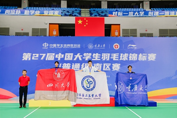 9月26日,第27屆中國大學生羽毛球錦標賽(普通組)南區(qū)賽在重慶大學圓滿落幕。我校智能制造與控制工程學院學生李玉浩憑借過硬的技戰(zhàn)術(shù)水平和穩(wěn)定的心理素質(zhì),在比賽中發(fā)揮出色,最終勇奪男子單打冠軍。體育部的王駿杰老師作為球隊教練,不僅在日常訓練中給予隊員專業(yè)指導,更在賽事期間全程保障,成為隊員的堅實后盾。