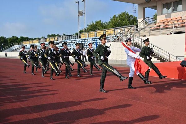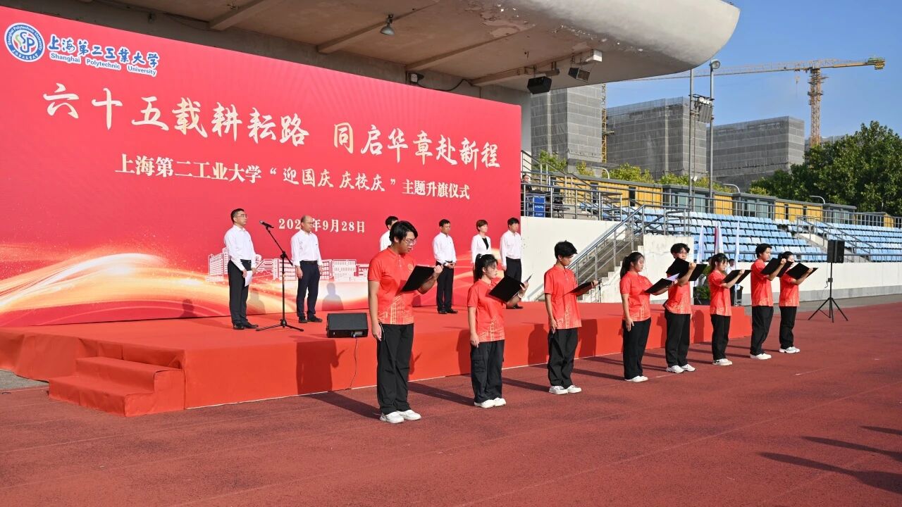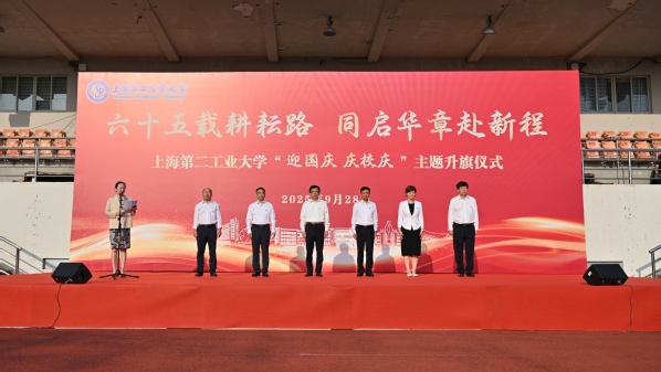 為慶祝中華人民共和國成立76周年,慶祝學校建校65周年,9月28日清晨,學校在體育場舉行了以“六十五載耕耘路 同啟華章赴新程”為主題的升旗儀式。校領導,相關職能部門、各學院負責人、學生工作負責人,師生代表1400余人參加儀式。儀式由我校黨委副書記吳沛東主持。