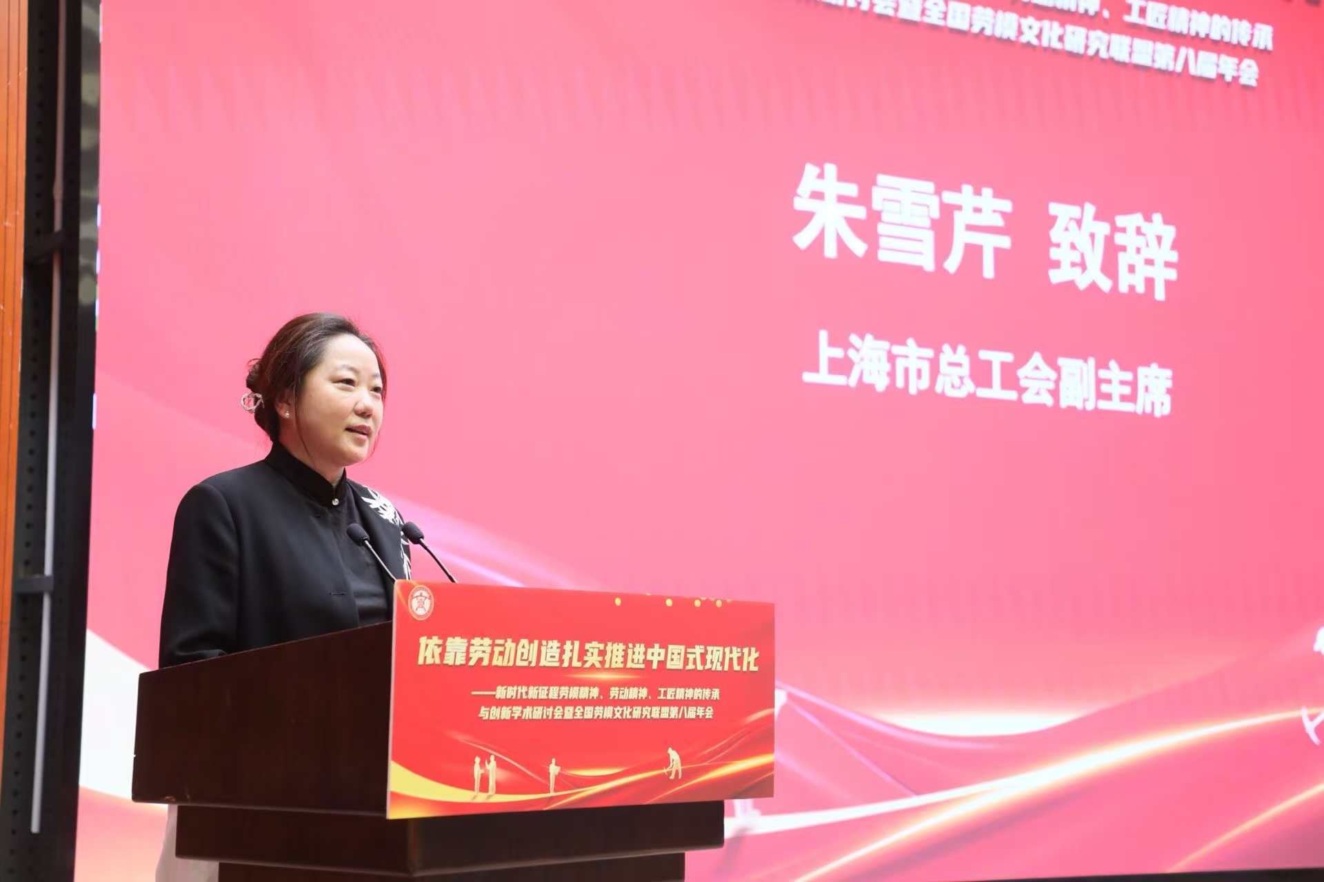 上海市總工會副主席朱雪芹在致辭中指出,勞模精神、勞動精神、工匠精神是中華民族寶貴的精神財富,也是推動上海建設社會主義現代化國際大都市的強大動力。她表示,上海將持續優化勞模服務機制、搭建創新平臺、講好勞模故事,讓工匠站“C位”、精神入人心,在全社會營造勞動光榮、技能寶貴、創造偉大的濃厚氛圍。