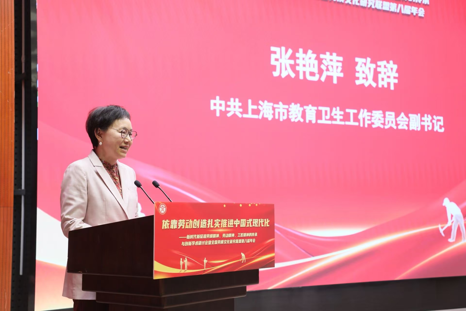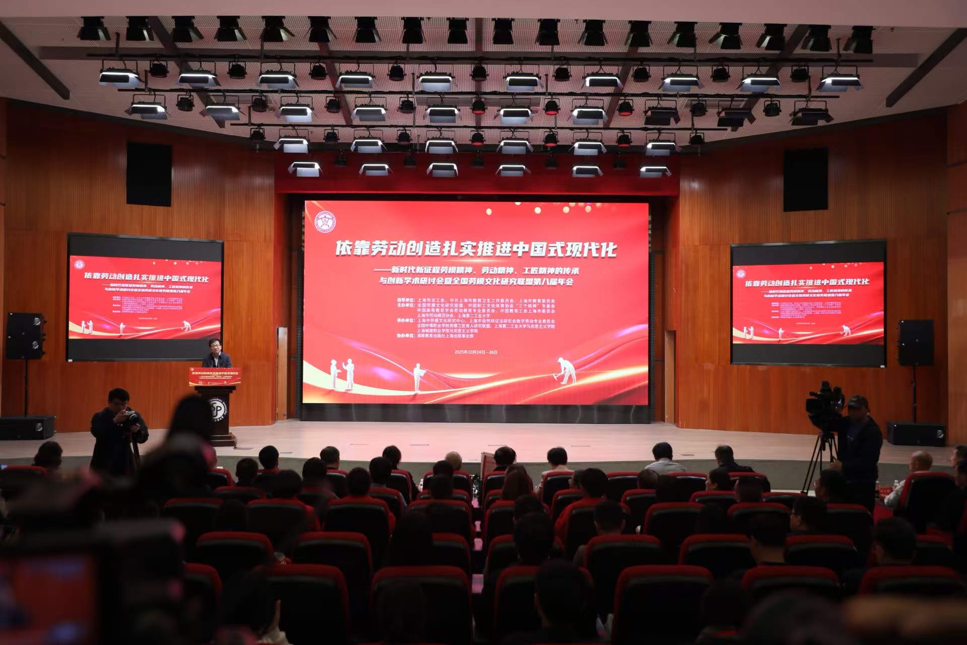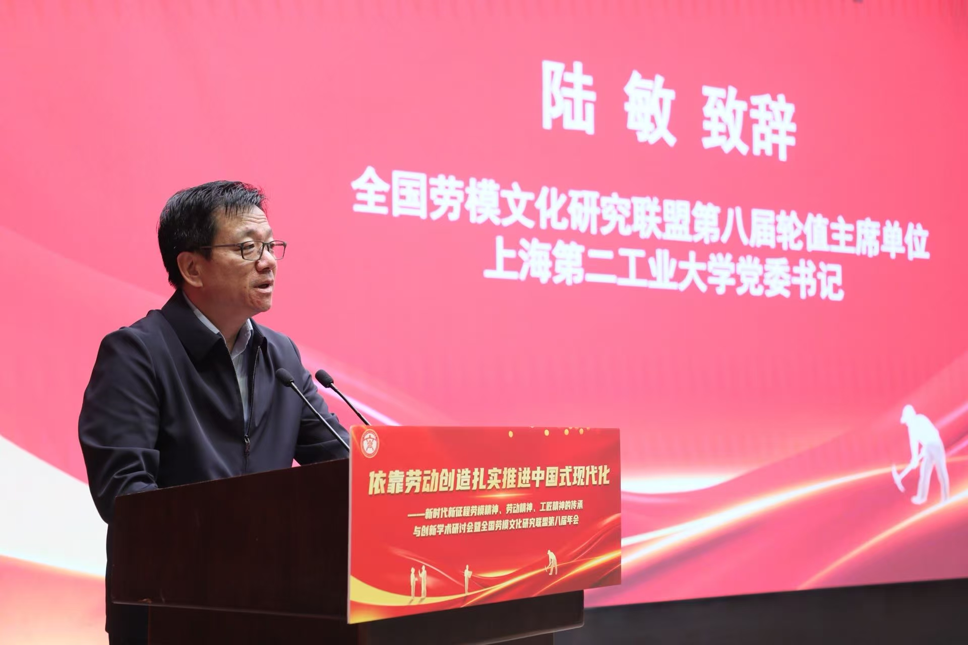 10月25日,以“依靠勞動創造扎實推進中國式現代化”為主題的新時代新征程勞模精神、勞動精神、工匠精神的傳承與創新學術研討會暨全國勞模文化研究聯盟第八屆年會在我校開幕。本次會議由上海市總工會、上海市教衛工作黨委、上海市教委共同指導,全國勞模文化研究聯盟聯合中國職工文化體育協會“三個精神”專委會、中國高等教育學會勞動教育專委會、上海市勞動模范協會、上海市教育工會、上海第二工業大學等多家單位聯合主辦。來自全國各地的200余位專家學者、勞模工匠代表及高校師生齊聚浦江之濱,共同探討勞模文化育人新機制,為弘揚“三個精神”、賦能中國式現代化貢獻智慧力量。開幕式由上海市教育工會常務副主席朱姝主持。